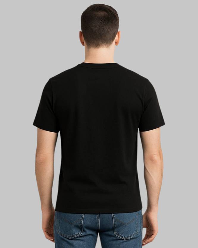 B.k Fords Men Printed Round Neck Regular Pure Cotton Black T-Shirt