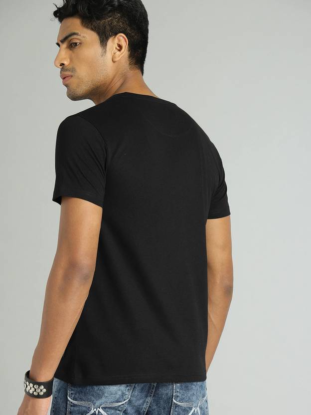 B.k Fords Men Printed Round Neck Regular Pure Cotton Black T-Shirt