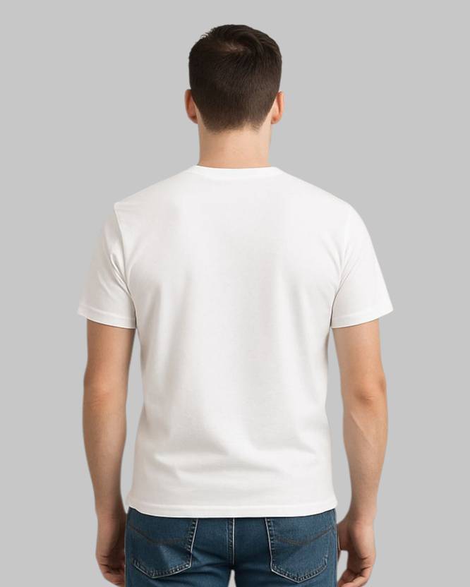 B.k Fords Men Printed Round Neck Regular Pure Cotton White T-Shirt