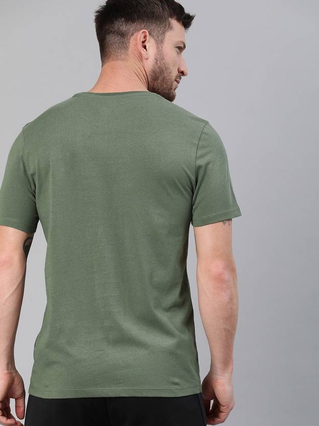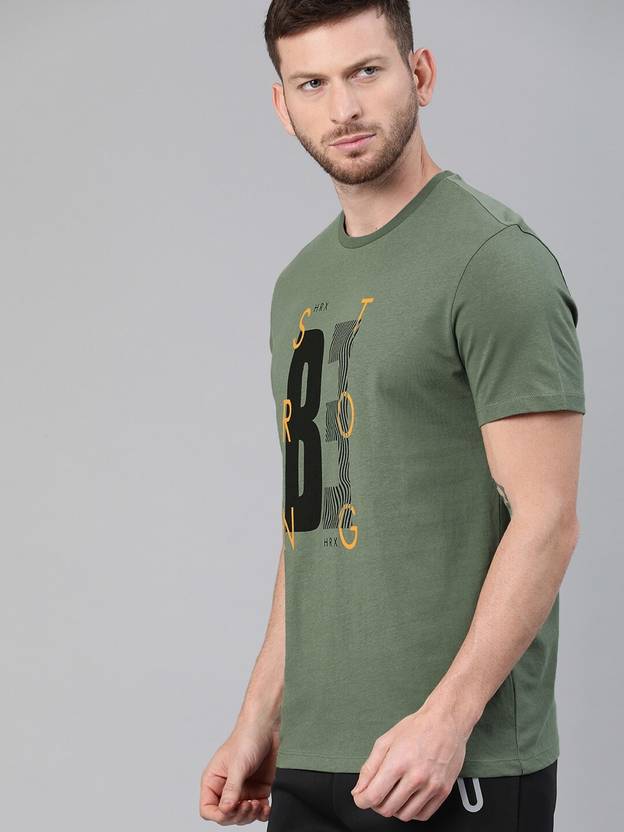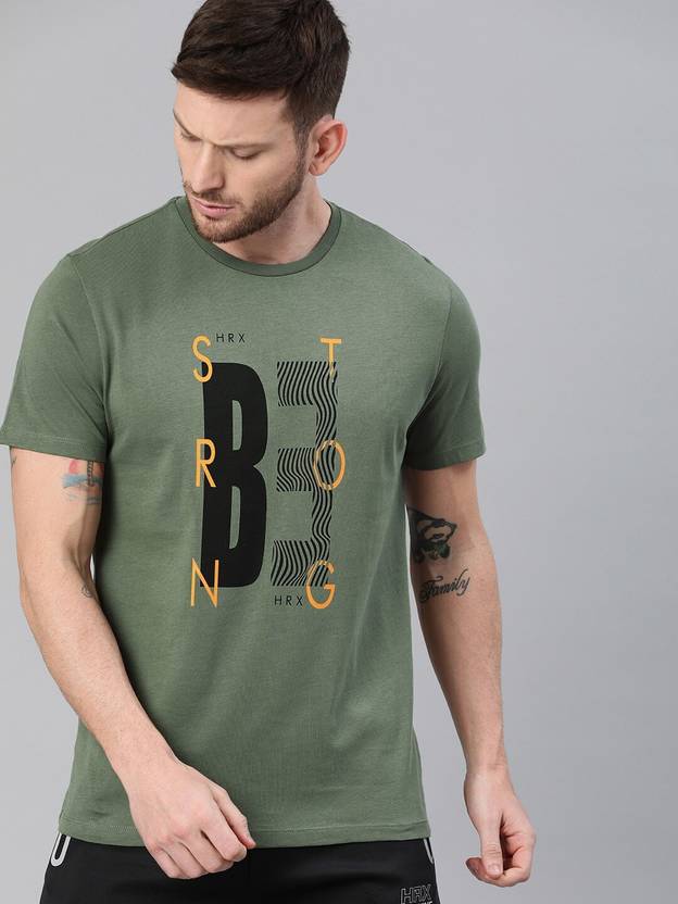 - Cut for style and comfort, the HRX Mens Running T-shirt is great for short warm up jogs as well as long Sunday cross country running. The bio washed cotton base feels soft against your skin and is perfect for all kinds of weather.FeaturesRunning T-shirtBio washed cotton feels soft against the skin.Design: Graphic PrintColour: Olive GreenFit: Regular fit. Elevate the look of your wardrobe with a few more basic tees like this high-end cotton one from HRX by Hrithik Roshan. Wear this olive piece many ways, with dark wash jeans, cuffed chinos and more.