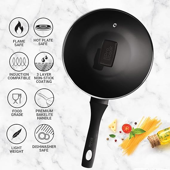 - Premium Bakelite Handle: The fry pan features a premium Bakelite handle that stays cool to the touch, ensuring a comfortable and secure grip while cooking. Its durable design enhances safety and ease of use, making it a reliable choice for your kitchen.