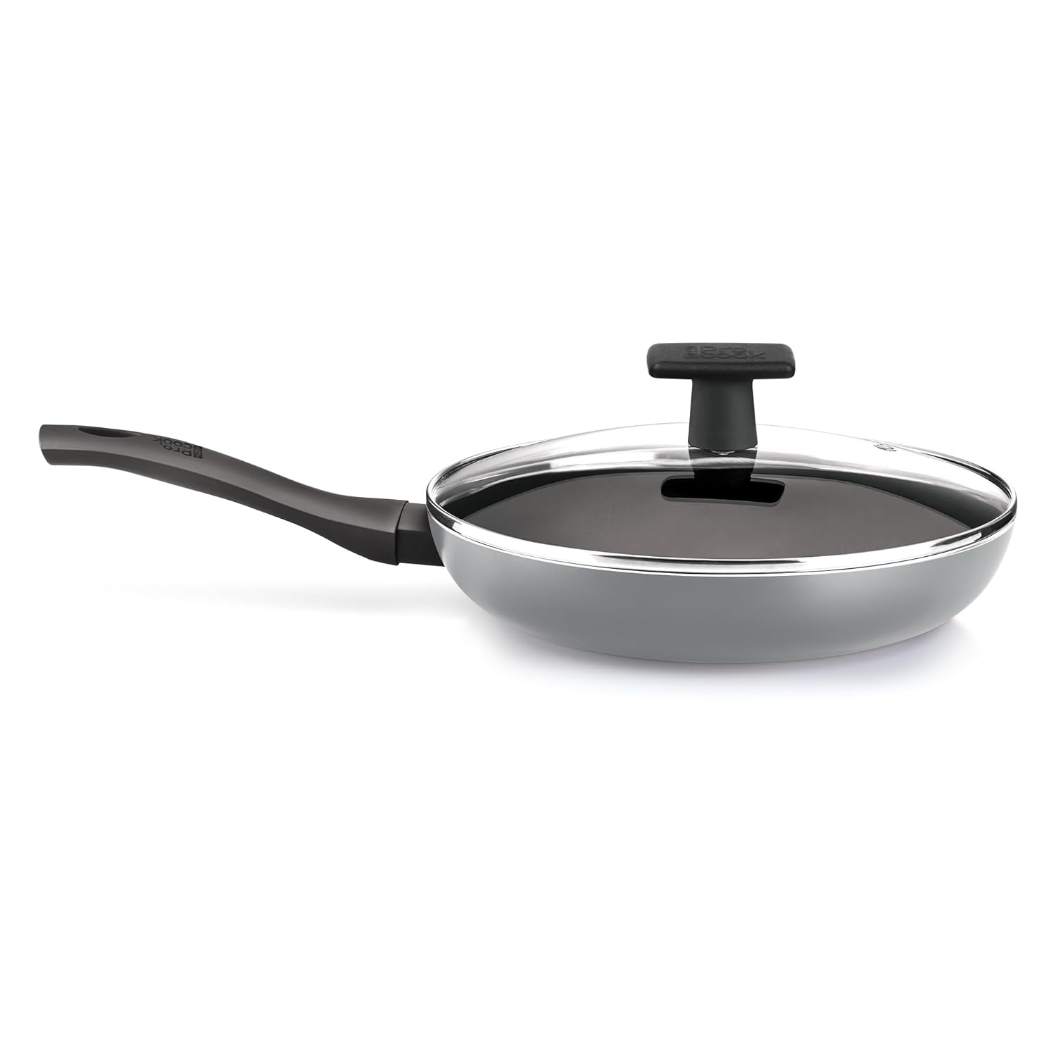 - Colour: Black; Material: Aluminium; Package Content: 1 - Piece Black Pearl Fry Pan with Glass Lid (22 cm)