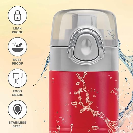 - Convenient size fits in the side pocket of bags which you can carry for school, Picnic, car bottle holder, etc. It comes with a one-touch mechanism to unlock the lid that shields the spout from dust