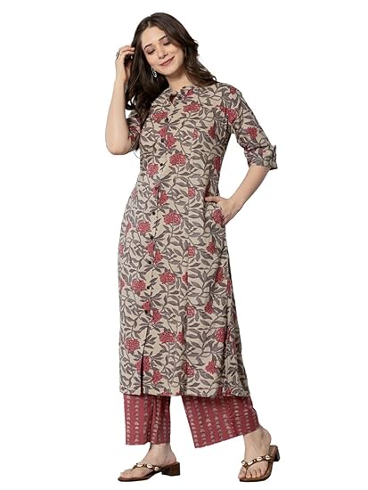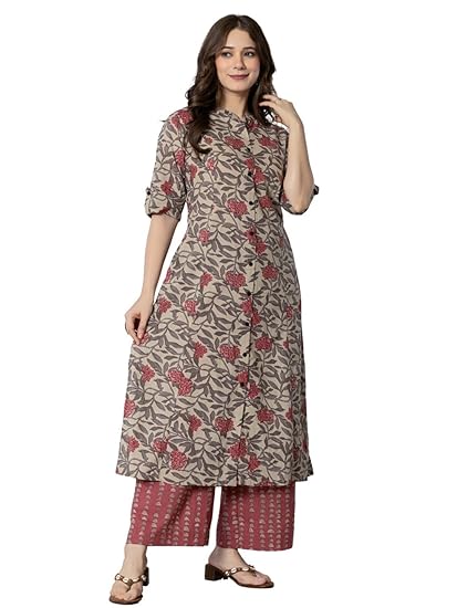 rytras Women's Cotton Printed A-Line Kurta with Palazzo Pant Set