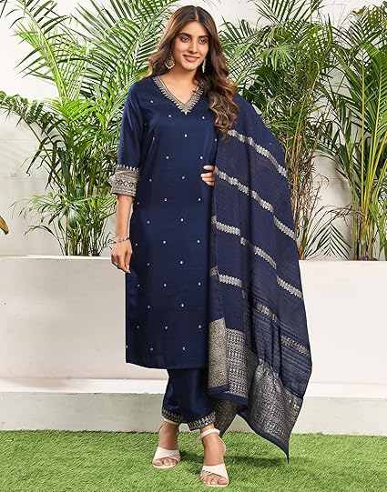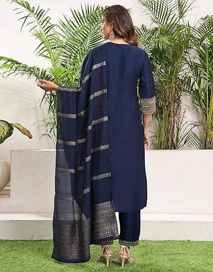 - Kurta Color:: Dark Blue || Pant Color::Royal Blue || Dupatta Color:: Royal Blue